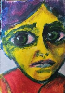 In August 2024 I cut and folded one from an A4 sketchbook page. Then you have a small accordion book with 17 mini pages of 6 x 9 cm. On each page I made a mini painting – between Augst and half October ’24. What a job, but how much fun to do!