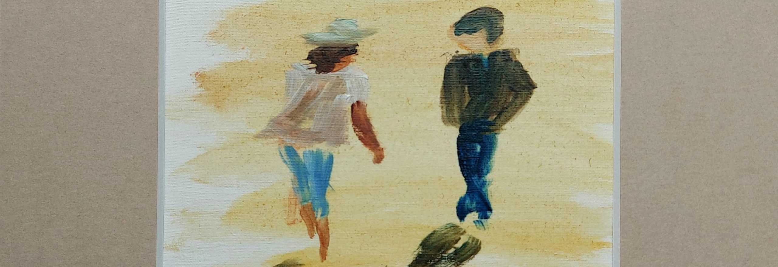 I painted this very quickly on a sheet of oil painting paper of 240 grs., in order to get the effect of fast brush strokes using only basic colours (red-yellow-blue).