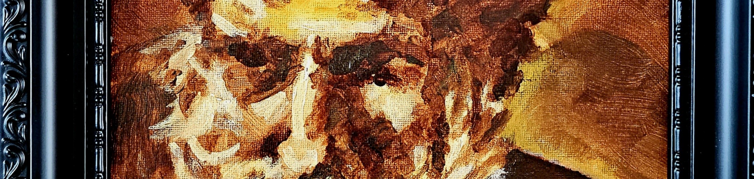 During a painting week in France, we had to practice the ‘Rembrandt style’ and this is my result. Learning from Rembrandt was way out of my comfort zone, as I am not used to this way of painting, but I enjoyed it immensely and I am quite proud of this painting. I called it ‘Socrates’ as he is my only ‘hero’, from whom I learned the power & wisdom of not-knowing.
